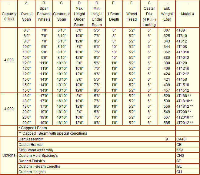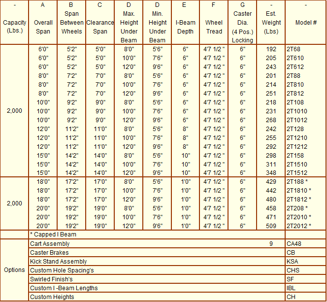 From 250 to 4,000 lb. cap. Aluminum T-Frame Portable Gantry Cranes