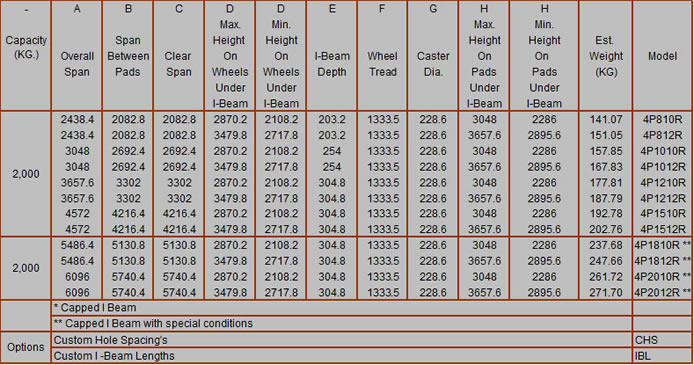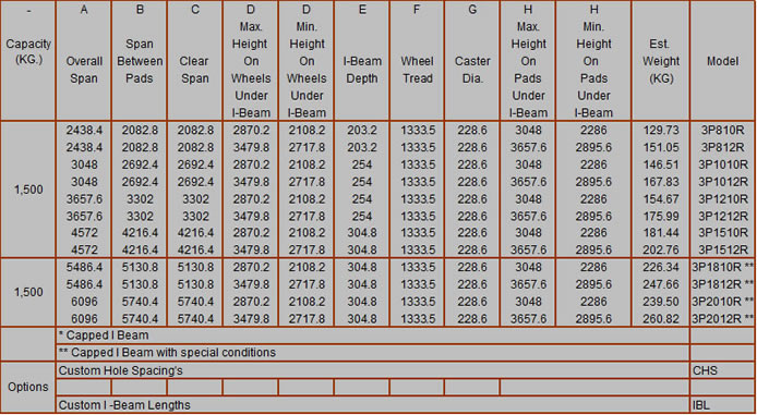Metric Table for 500kg, 1,000kg,1,500kg, 2,000kg & 3,000kg Capacity